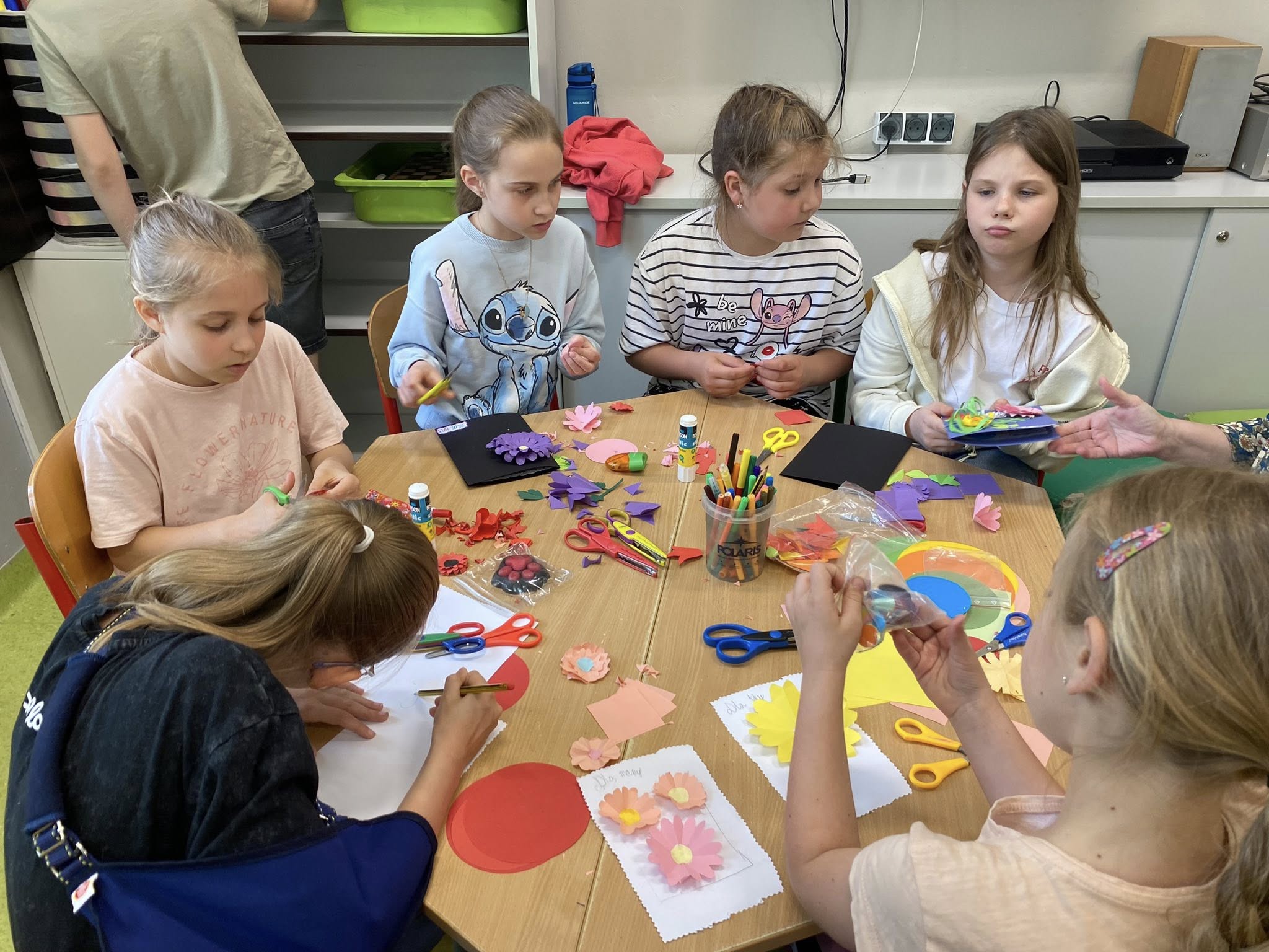 W tym tygodniu nasze świetliczaki dzielnie przygotowywały upominki dla naszych kochanych mam -własnoręcznie wykonane laurki przestrzenne oraz barwne magnesy.