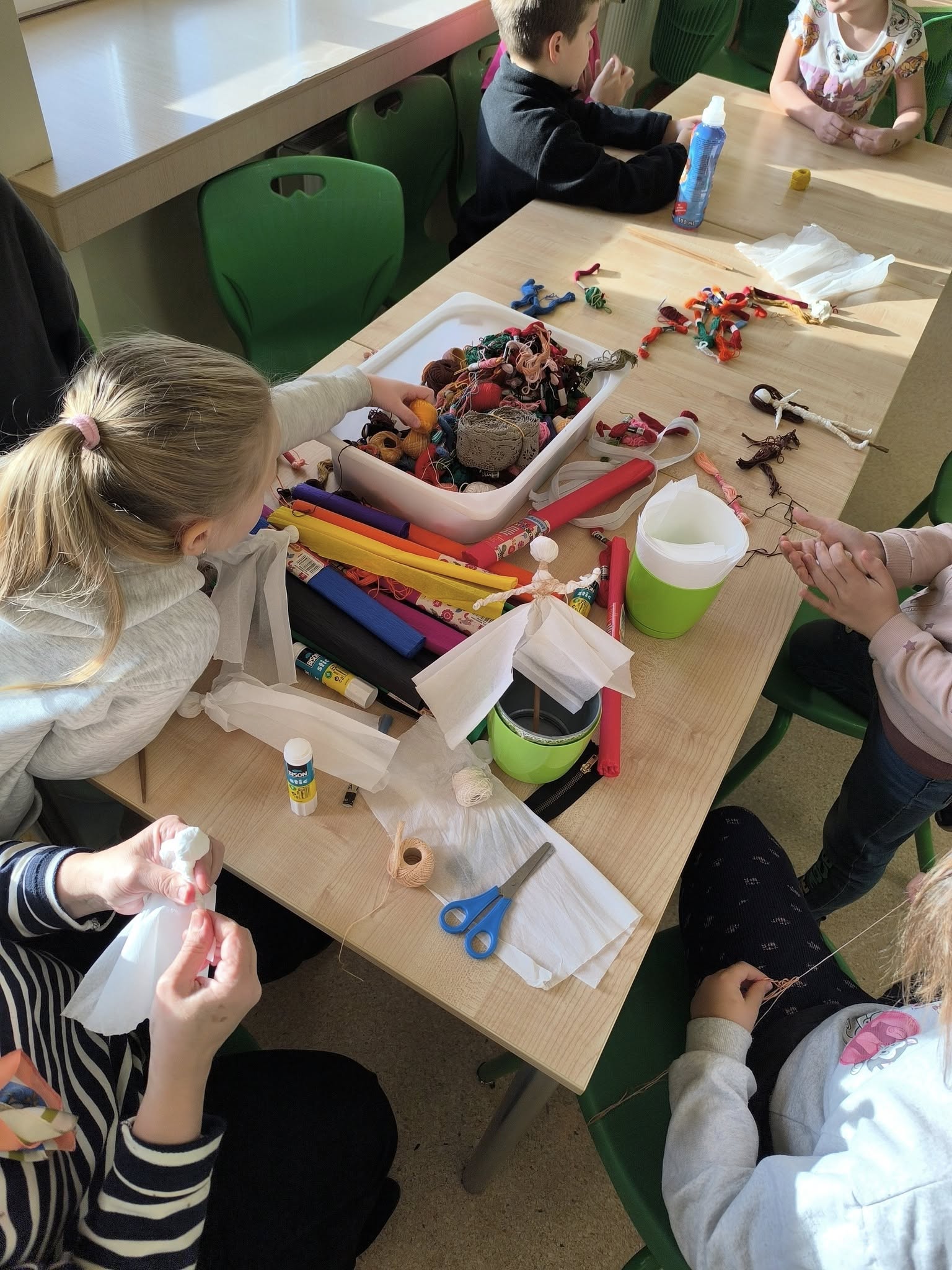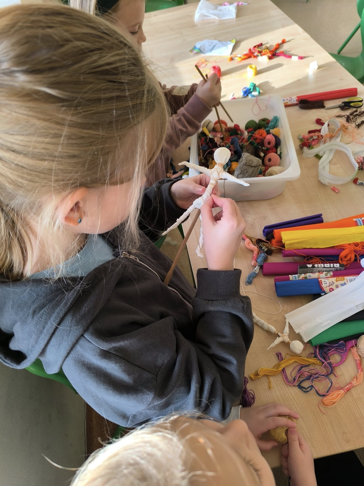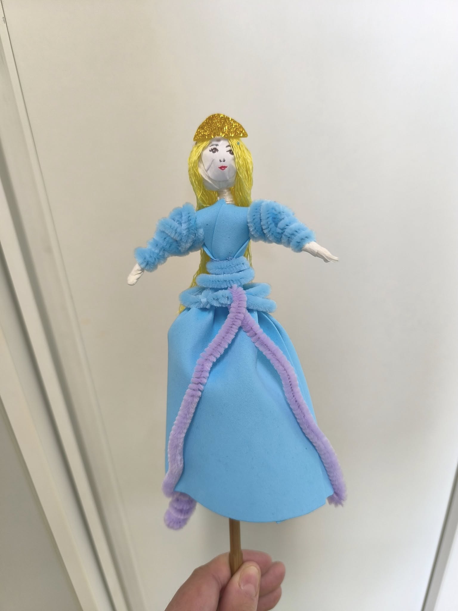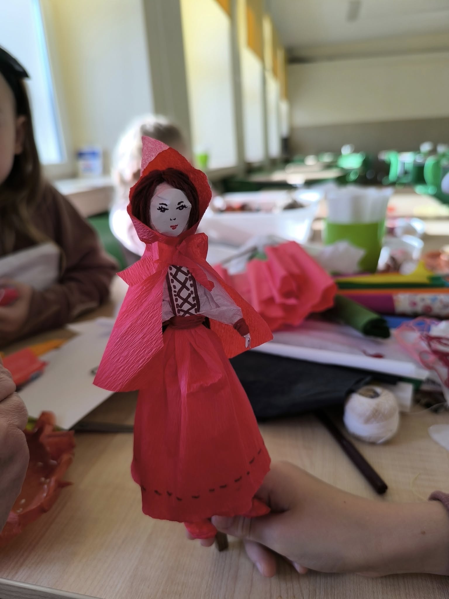Na zakończenie każdy wykonał przepiękną laleczkę przedstawiającą wybraną postać z bajki. Powstały naprawdę wyjątkowe prace – pełne kolorów, wyobraźni i uśmiechu!
