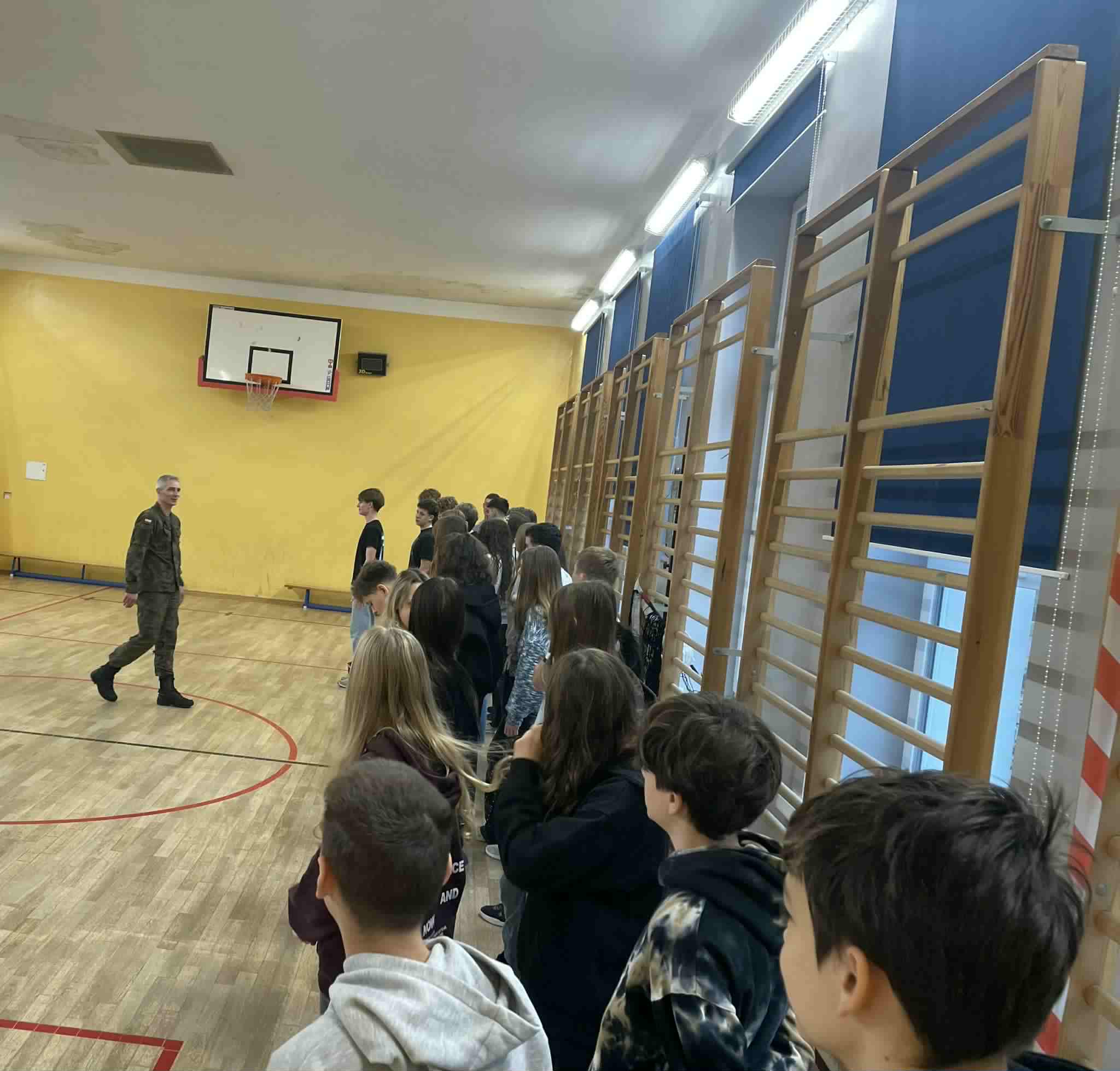 W dniu 12.12.2025 r. w naszej szkole odbyło się spotkanie w ramach programu Ministerstwa Obrony Narodowej we współpracy z Ministerstwem Edukacji Narodowej pod nazwą „Edukacja z wojskiem”. Zajęcia poprowadził sierż. Grzegorz Godala z 9 Łódzkiej Brygady Obrony Terytorialnej w Łodzi. Uczniowie klas VIII a i VIII d mogli zapoznać się z zagadnieniami dotyczącymi służby w wojsku oraz działań proobronnych. Odbyły się również zajęcia praktyczne z musztry, podczas których uczniowie poznali zasady sprawnego ustawiania się w podczas zbiórek oraz maszerowania w szyku.