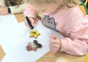 Dzieci z ogromną radością zdobiły przepyszne pierniki, a następnie z apetytem je kosztowały.