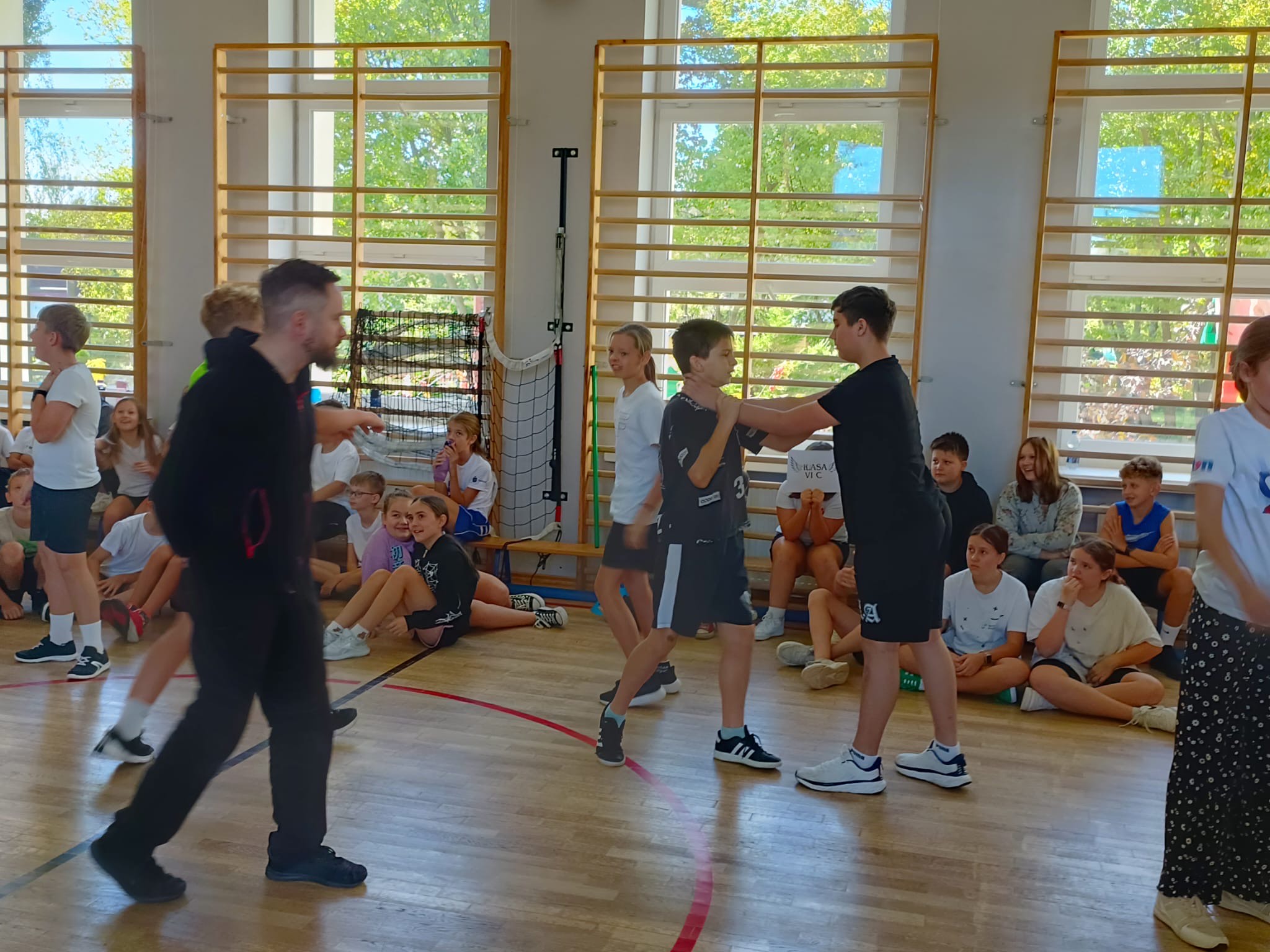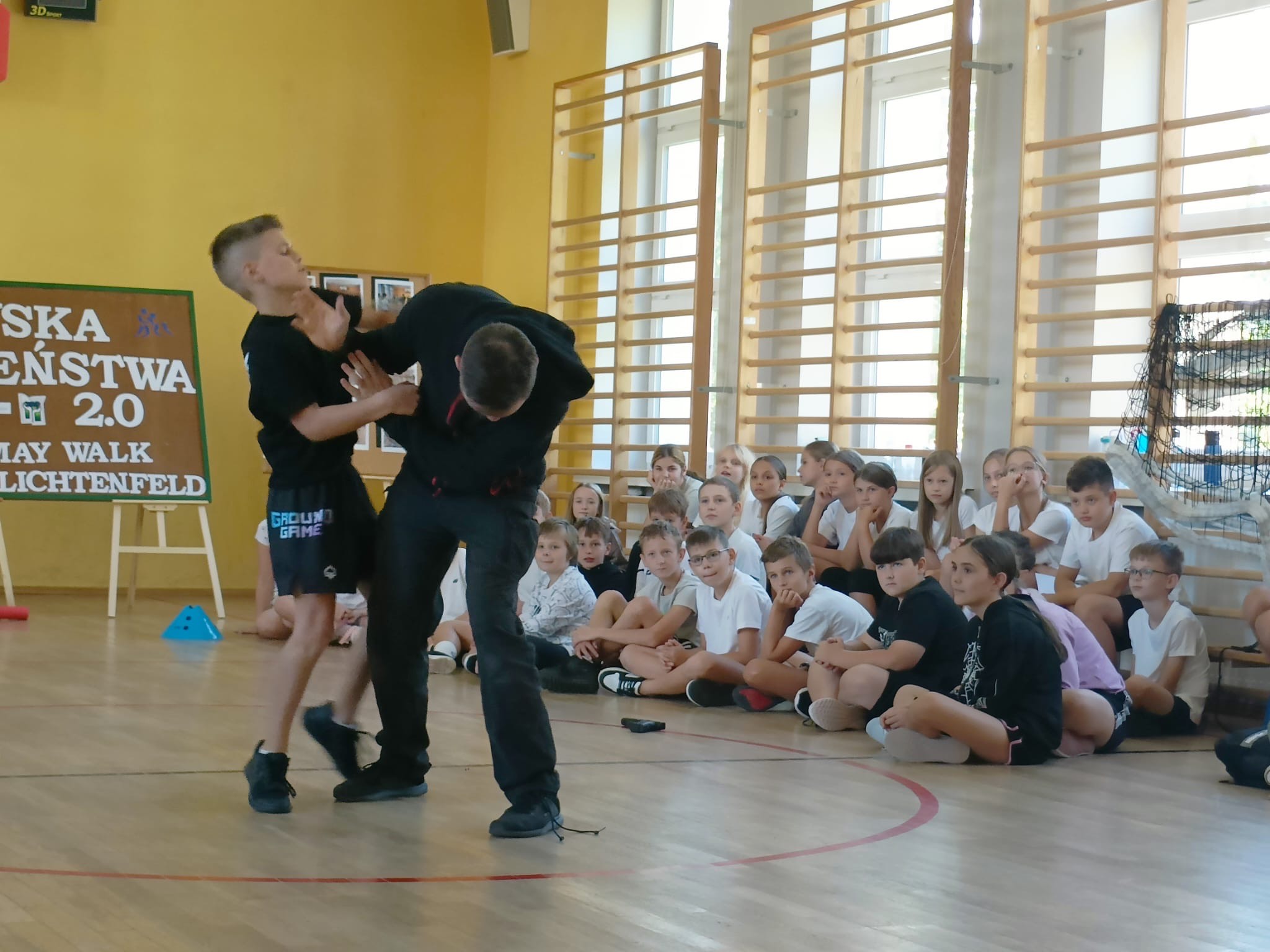 Dzięki współpracy z towarzystwem Przyjaciół Dzieci w dniach 15.09-25.09 w naszej szkole realizowany był projekt "Igrzyska bezpieczeństwa" finansowany przez Łódzki Program Mikrograntów 2025, który współfinansowany jest z budżetu Miasta Łodzi. Dzięki wsparciu organizacji pozarządowej OPUS i budżetu Miasta Łodzi uczniowie ze szkół z dzielnicy Górna, w tym również nasi uczniowie, mieli szansę poznać techniki Krav Maga, czyli sztuki samoobrony. Uczestnicy czterech sesji treningowych nauczyli się między innymi, jak wyrwać się z najpowszechniejszego chwytu za nadgarstki i ubranie oburącz i jednorącz. Poznali techniki reagowania na duszenie tętnicze i krtaniowe od przodu i od tyłu poprzez wykorzystanie zgięcia łokciowego i przedramienia. Nauczyli się, jak szybko wstawać, by mieć cenne sekundy na ucieczkę czyli tzw. bieg sprinterski. Wszystkie zdobyte umiejętności prezentowali następnie podczas gali finałowej, przed wszystkimi uczestnikami projektu oraz gośćmi, a także mieli okazję zobaczyć zaawansowane techniki sztuki samoobrony krav maga przedstawione przez wieloletnich studentów Collegium Krav Maga.