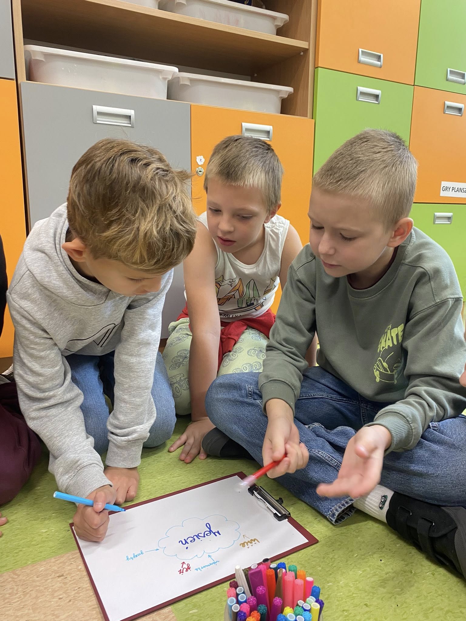 pracowaliśmy w grupach nad mapami myśli, ucząc się współpracy i dzielenia pomysłami,