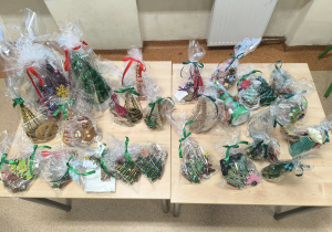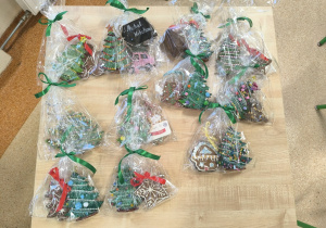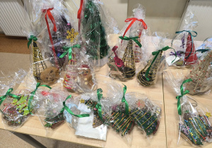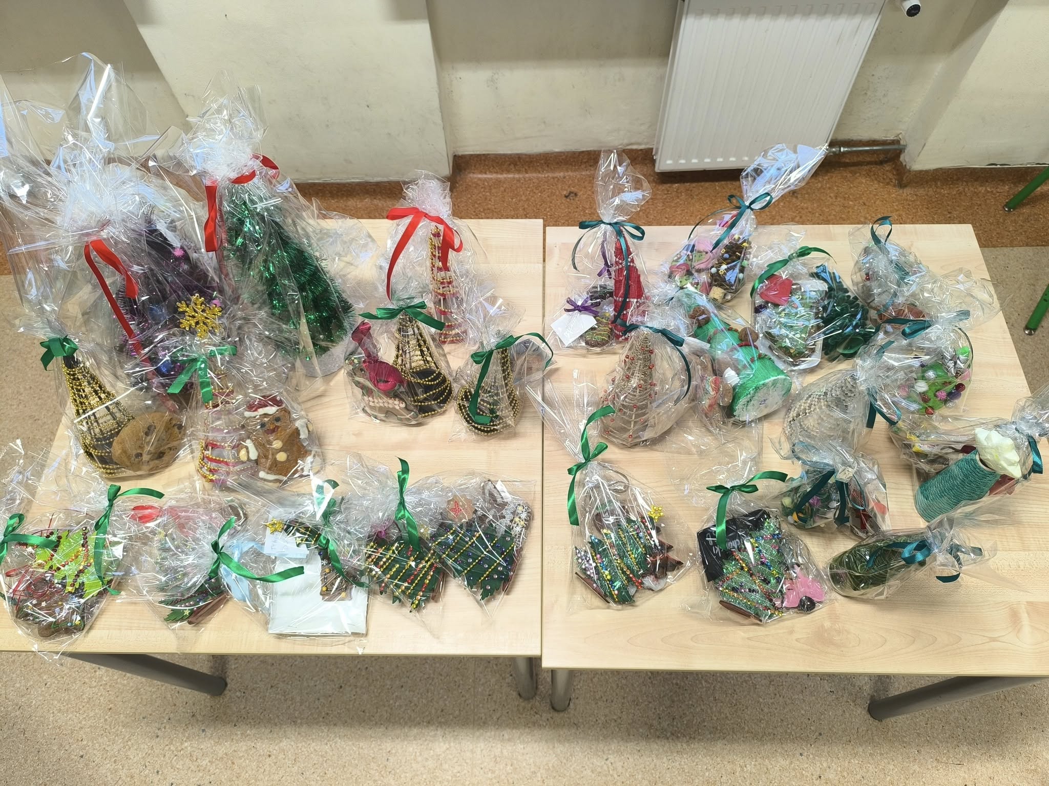 Dzieci uczęszczające do świetlicy również stworzyły piękne dekoracje świąteczne, które wraz z pierniczkami zostały przekazane seniorom.