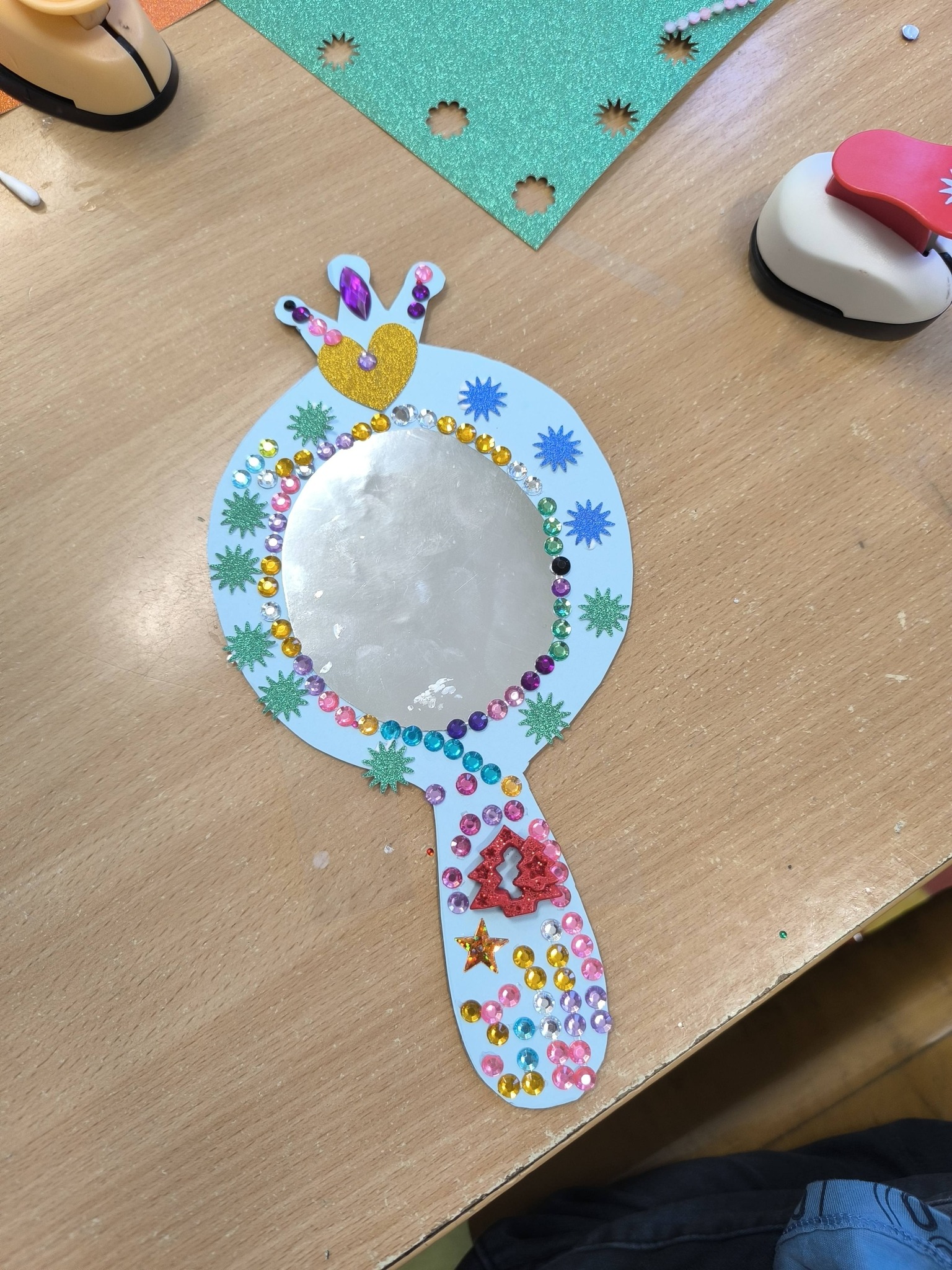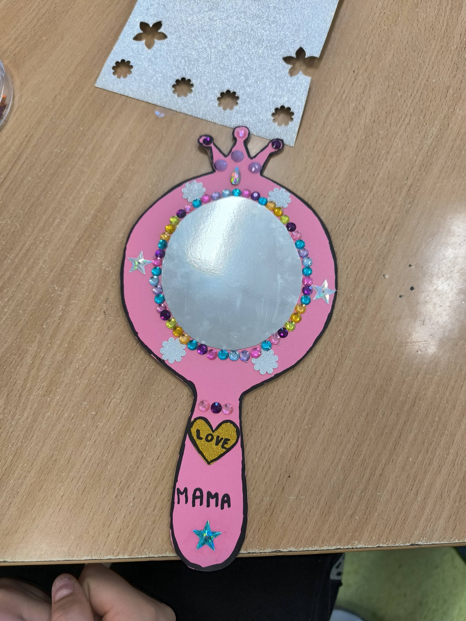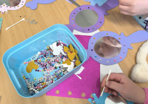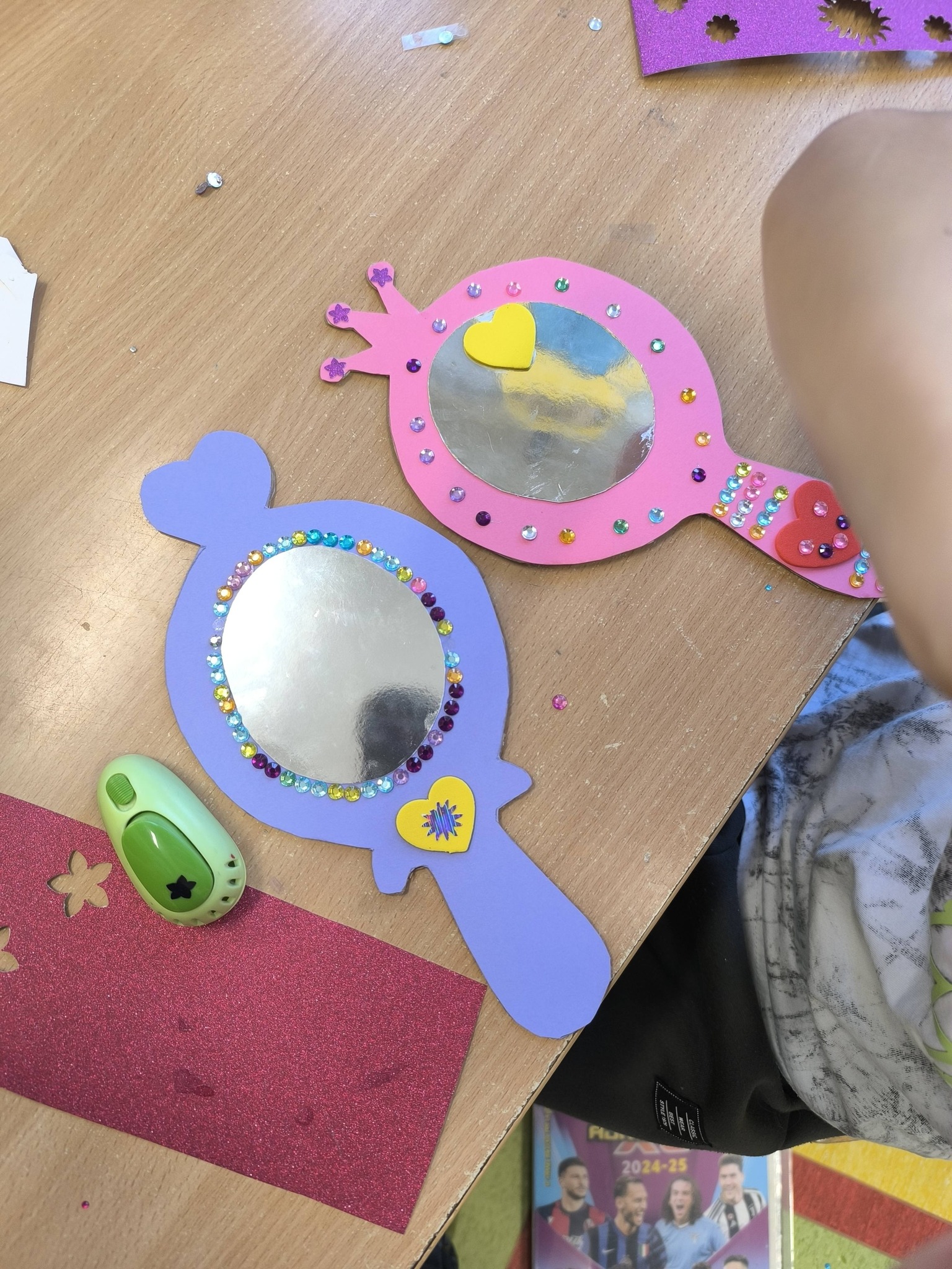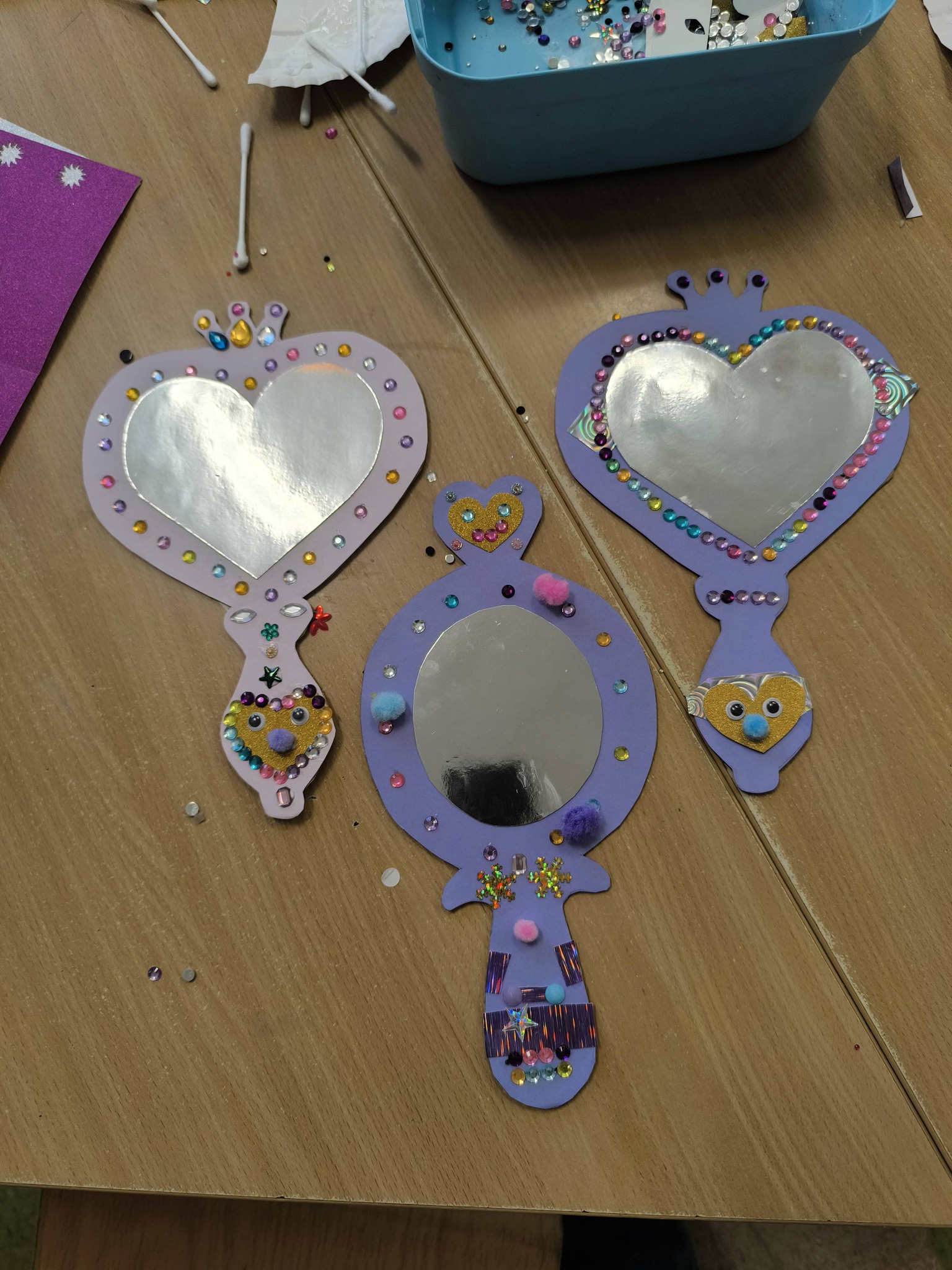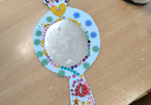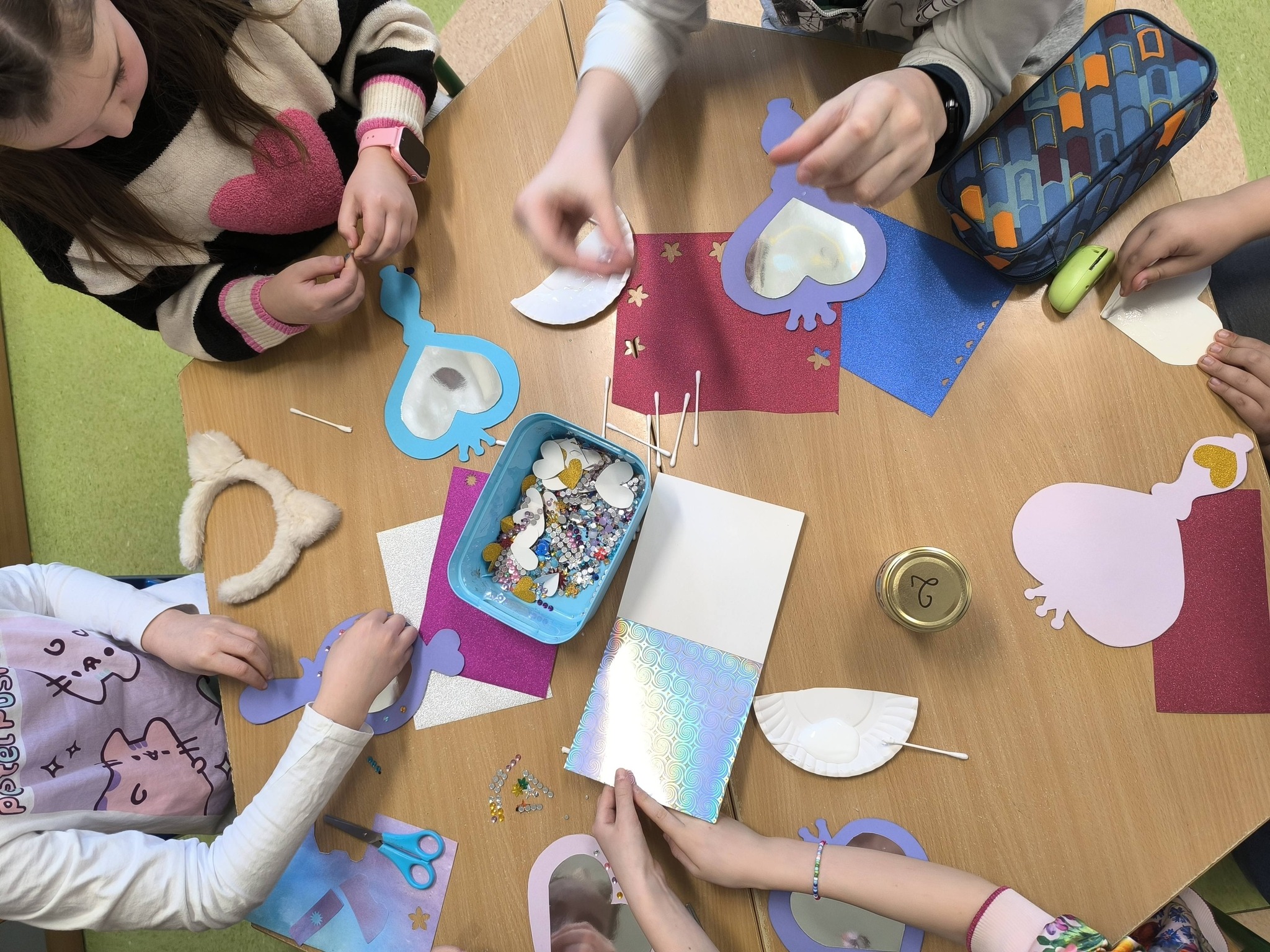 Opowiadały również, kim są kobiety w naszym życiu, a także rozwiązywały różne łamigłówki. Oczywiście nie mogło zabraknąć specjalnego prezentu. Świetlica zamieniła się w prawdziwą krainę lusterek, które dzieci tworzyły w kreatywny sposób.