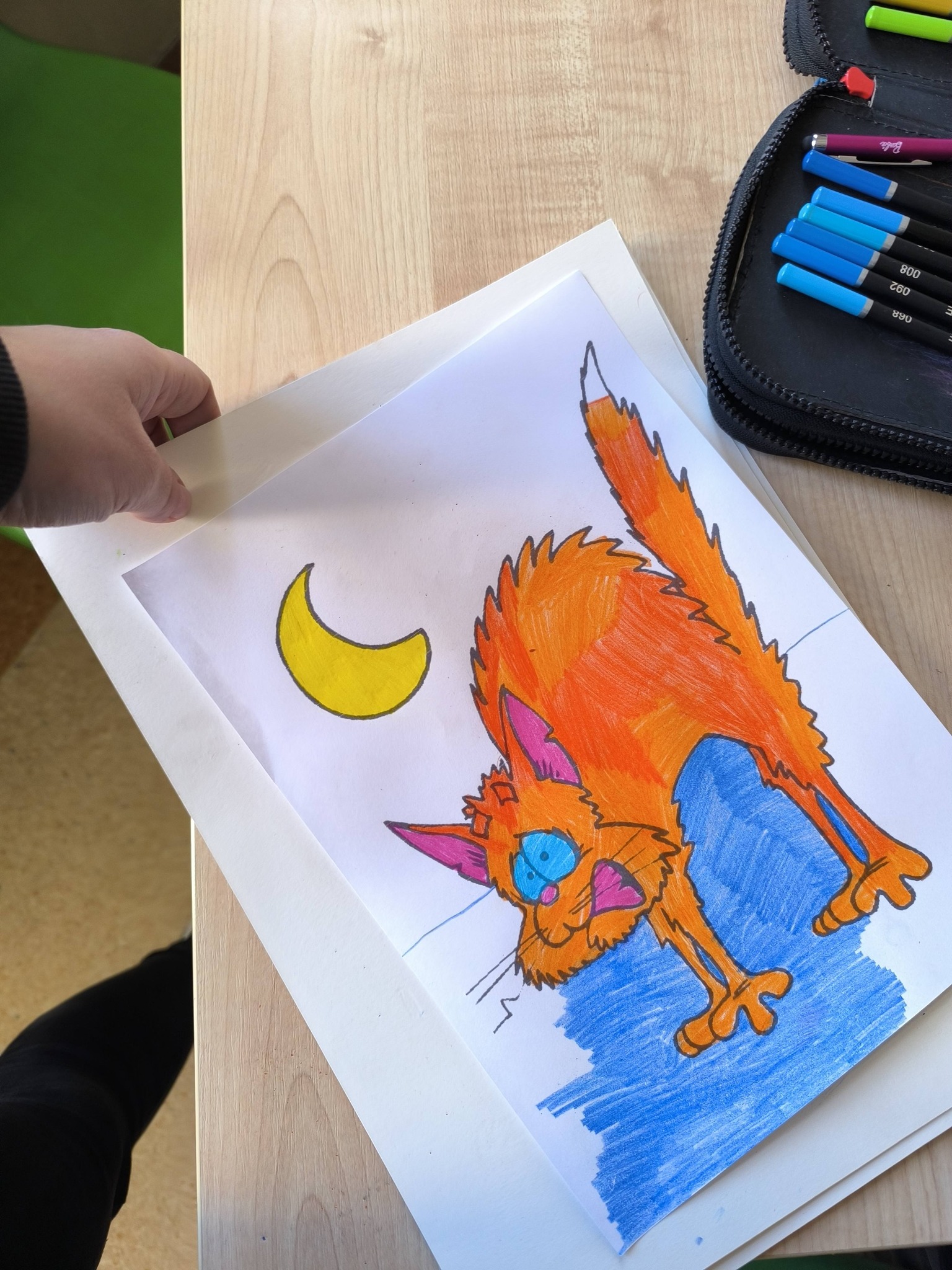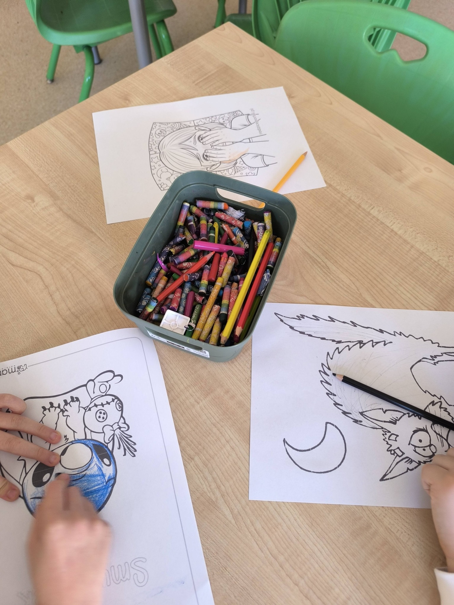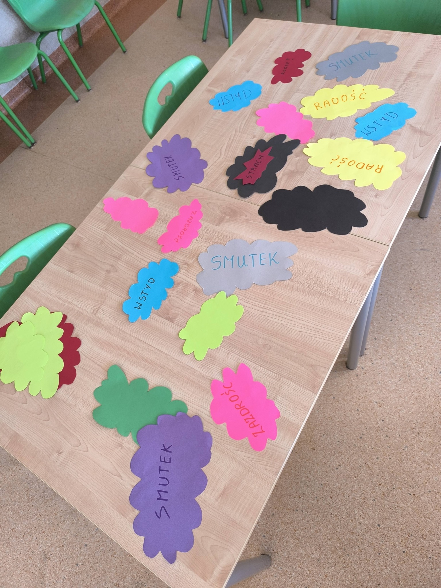 Podczas zajęć uczniowie kolorowali kolorowanki przedstawiające różne emocje oraz omawiali sytuacje, w których mogą je odczuwać. Zajęcia sprzyjały rozwijaniu empatii i umiejętności nazywania własnych uczuć.