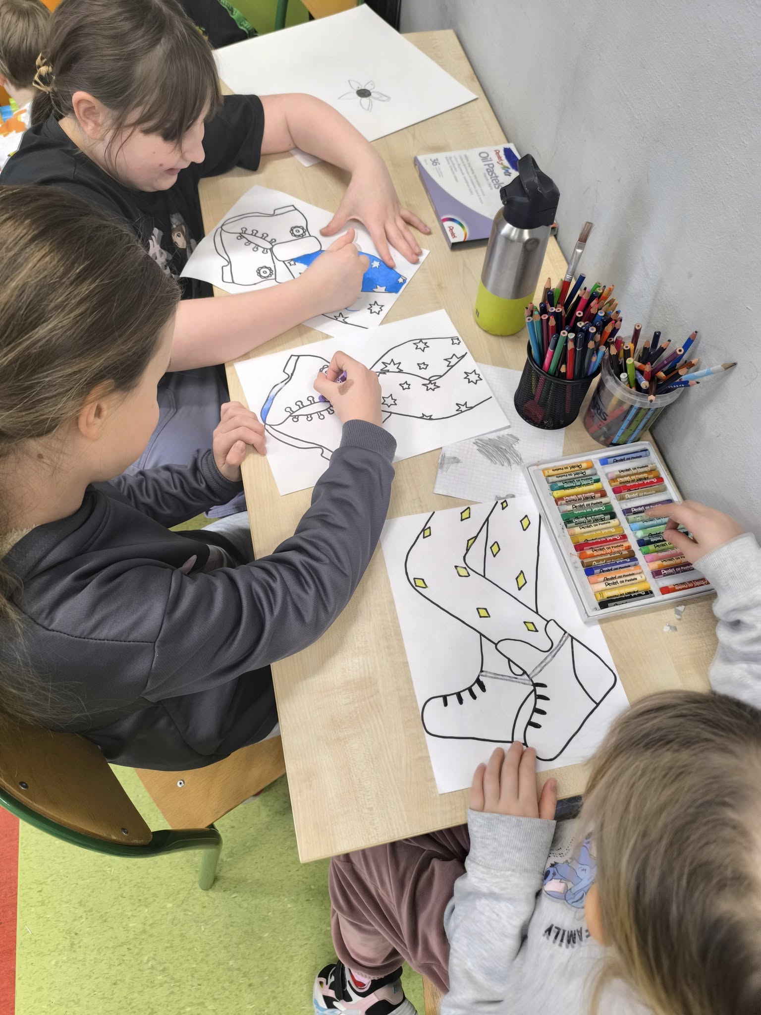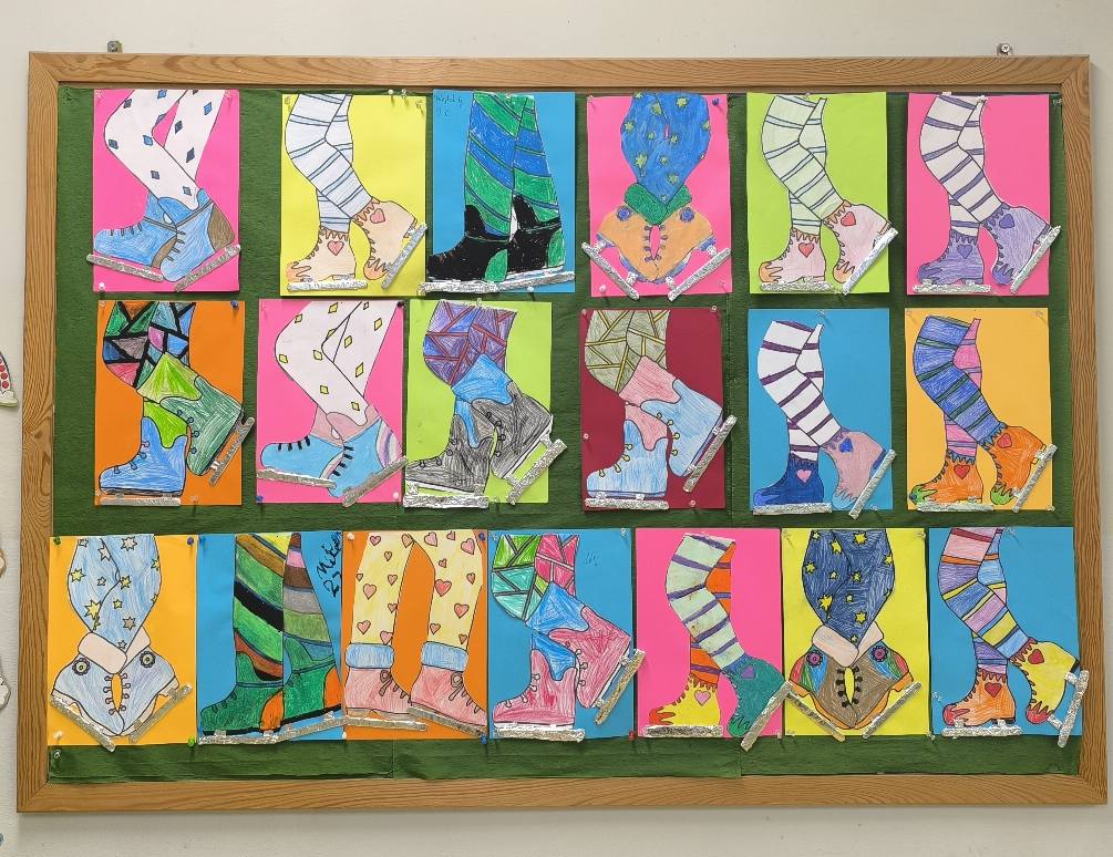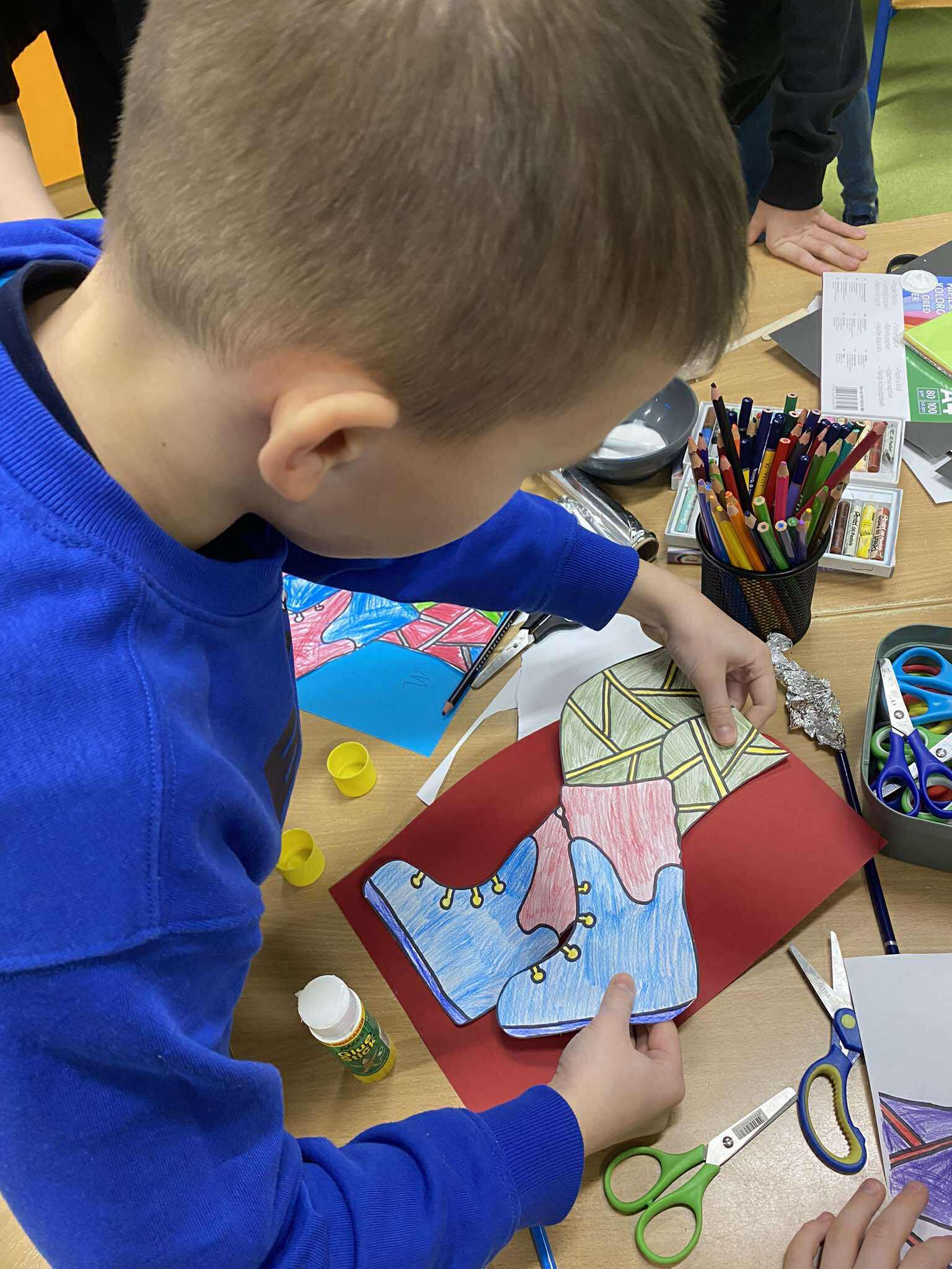 Na ostatnich zajęciach plastycznych dzieci stworzyły piękne prace pt. „Łyżwy”.